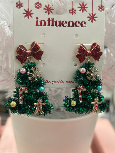 Tinsel Christmas Tree Earrings