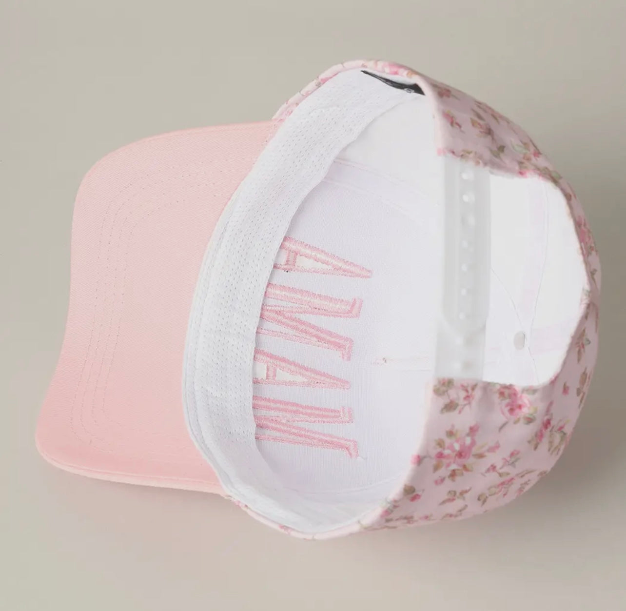 This embroidered flower pattern two-tone cap offers a stylish and contemporary twist on a classic design.